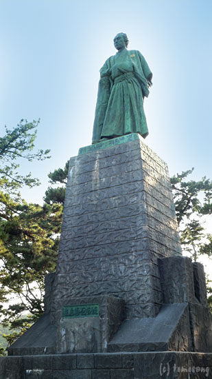 坂本龍馬の銅像。見事に逆光で上手く撮れなかった。よって画像は加工してます。この像を綺麗に撮影したければ午前中の訪問をオススメする。