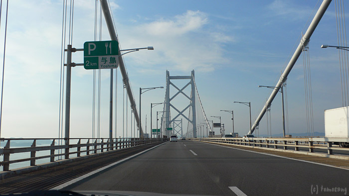 四国を去る前に、瀬戸大橋全体を見渡せる場所に寄りました。展望所からの眺めがことごとく霞んでいて、綺麗に見渡せる事が一度も出来なかったので。