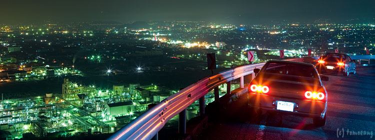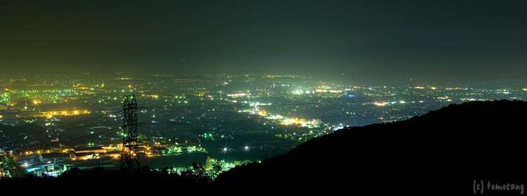 32を入れて撮っておかないと!と思いながら走っていると、鑑賞ポイント発見。でも先客が多くて止めれなかった。しょうがないから他のポイントを探して少し下ったところで路肩に止めて撮影開始。最初に見つけたポイントの方が、角度的に背後へ夜景の光りが沢山入って綺麗だった。空くのを待ってる時間なんて無かったのでしょうがない。そして撮影したのが一番上の一枚目。