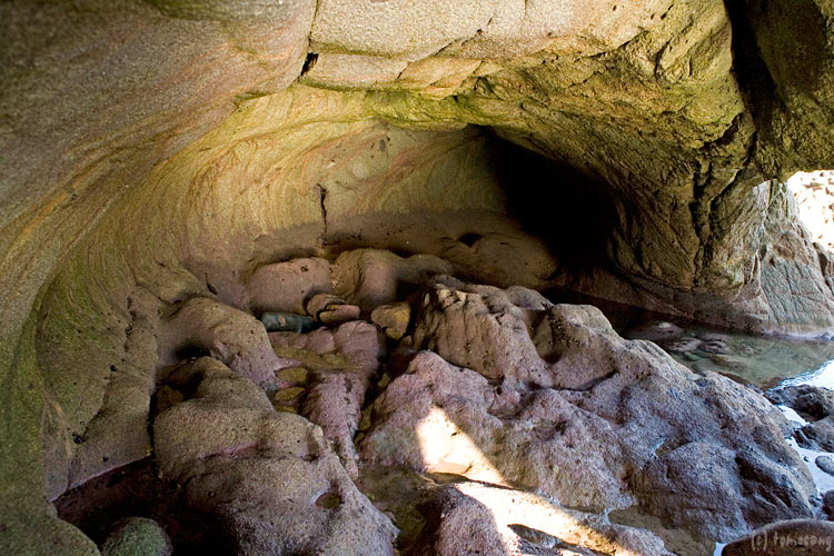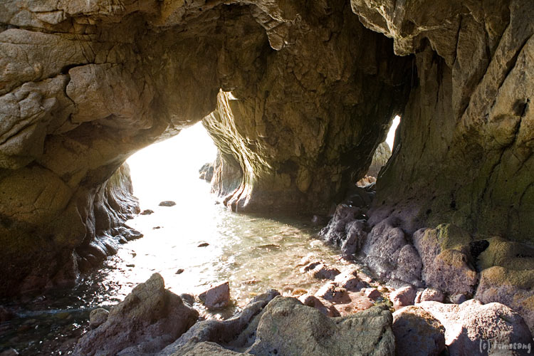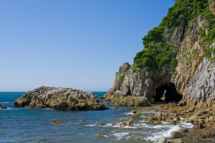 西側の穴は大潮でも完全に潮が引くことは無いようで、歩いて通り抜けは不可能。