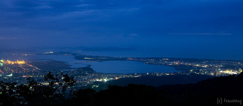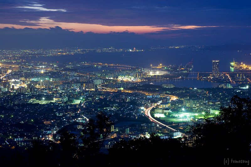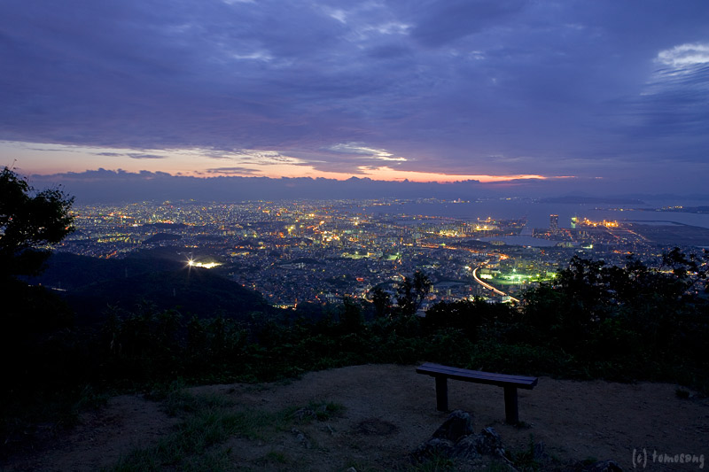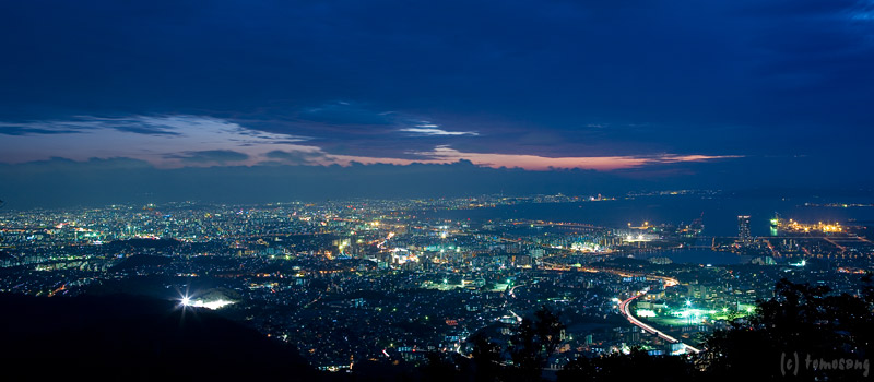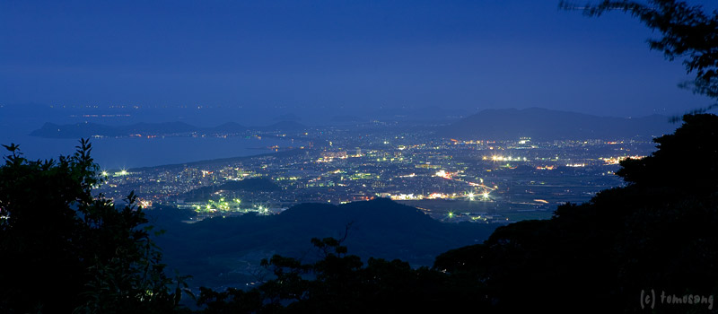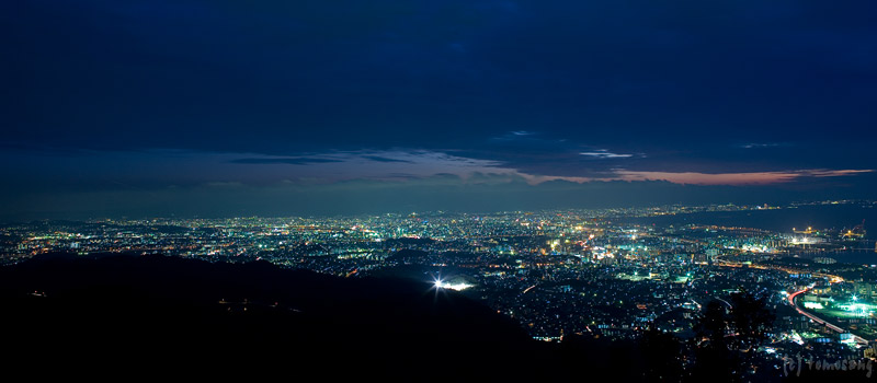 山からの夜景撮影は初めてではないので、撮影準備としてロケハンを兼ね明るい時に数回登り、道を覚えた上での撮影。道に迷うという不安は無かった。ただ、夜道を照らすと、その光に反応した夜行性の虫が一斉に逃げていく。これは初めての経験。気持ち悪ぃ!不気味ぃ!
