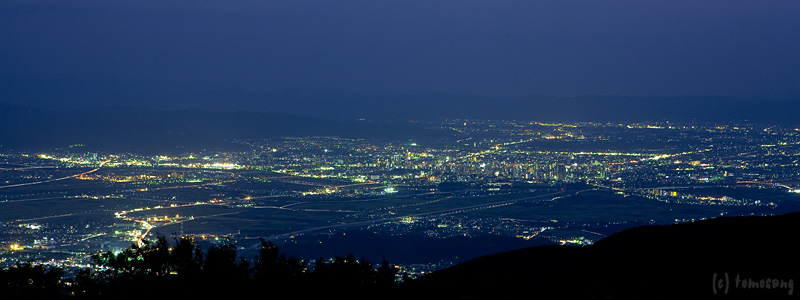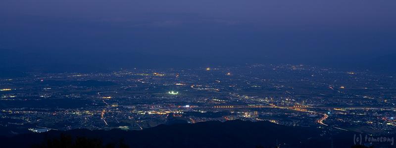 中央奥の山が立花山山系【立花山からの夜景】になります。
