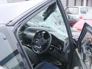 ライトとフォグランプが無くなってます。恐らく粉々になって飛び散ったのでしょう。