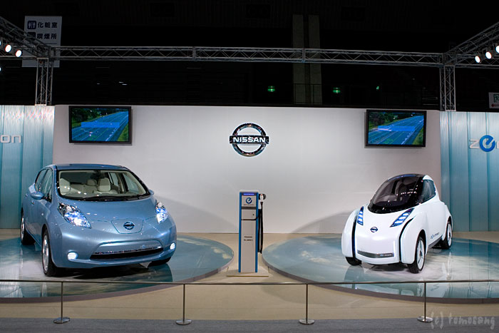 日産初の電気自動車「Leaf」(左)と、「LandGlider」(右)