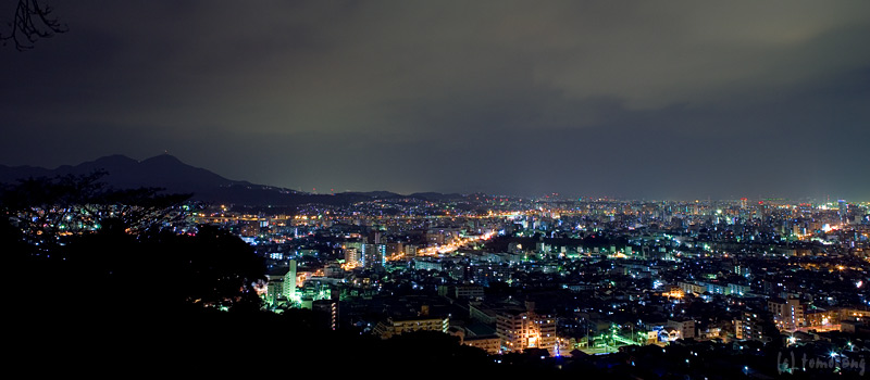 その多くは木に覆われて景色は見えない。だが一部だけ視界が開けていて小倉の夜景を一望出来る。