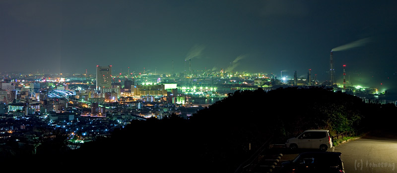 山麓の道をさらに進み、安部山公園を抜けて暫く行くと左側に公衆便所があって、脇の道を抜けると老人ホームが出現。さらに奥へ進むと駐車場と展望台がある。こちらからも小倉の夜景が一望可能。