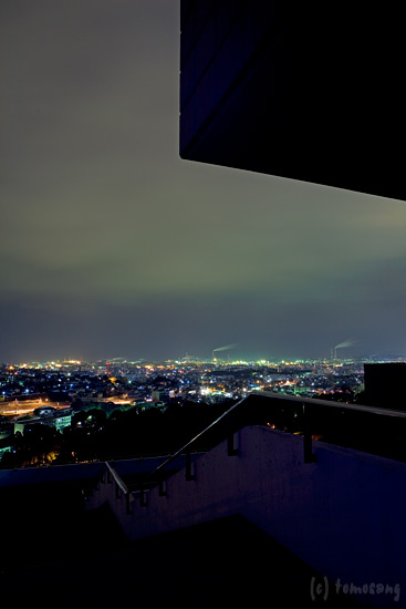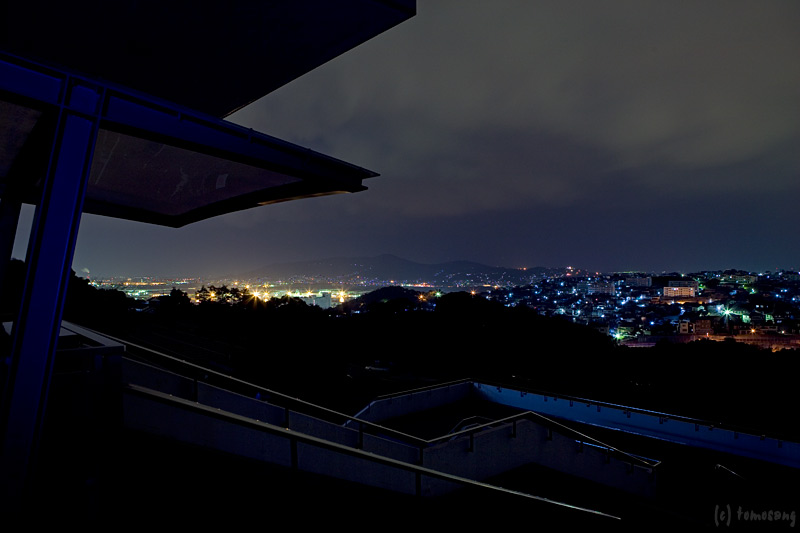 国道3号線戸畑付近から少し横道にそれた高台にある美術館で、その玄関が展望デッキのようになっています。もちろん美術館は夜間開いていませんが、玄関までは上ることが出来て、そこから戸畑や小倉の夜景を眺めることが出来ます。