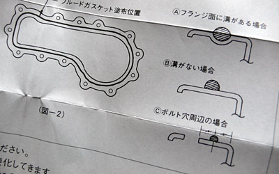 塗った後、ガスケットの説明書が箱の底にあるのを発見。