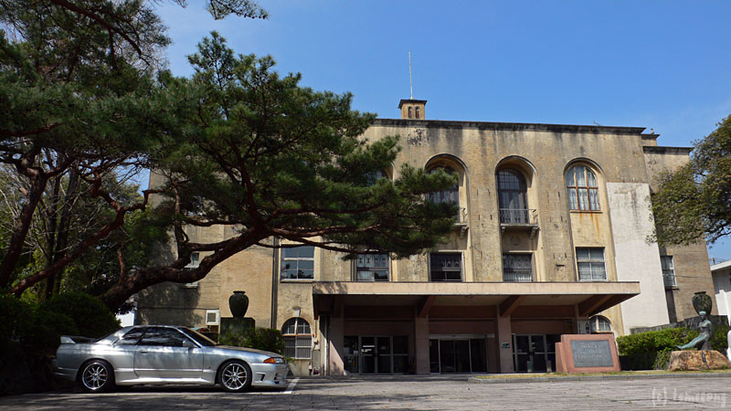 家は駅前にあるので駐車場がありません。近くのパーキングに入れていた32を出して、そのまま竹瓦温泉へ。