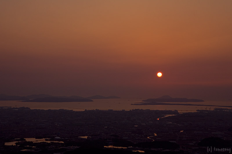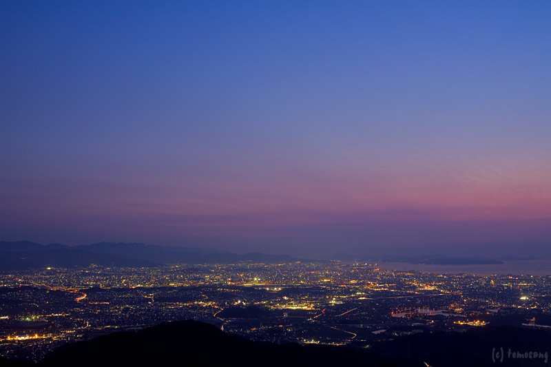 日没後は徐々に夜景へと変わって行く。