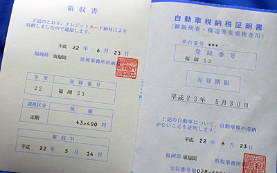 今までは銀行・郵便局・コンビニエンスでの支払い、半券にハンコを押してもらうことにより、それが納税の証明書となっていた。この証明書がないと車検を受けることは出来ない。
