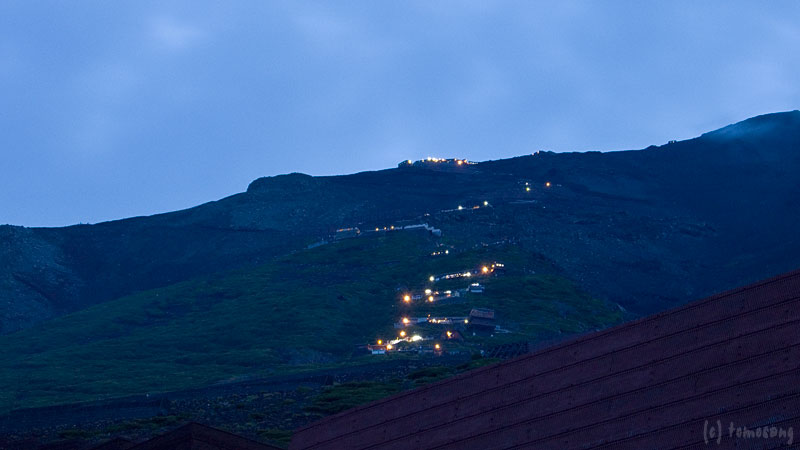 何がむかつくって、五合目を手前に最後は登り坂になっていること。ぶつくさ文句を言いながら19時25分五合目到着。