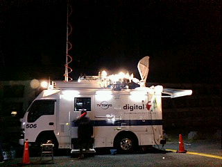 テレビ東京「WBS」が富士山から生中継ということで、中継車が止まっていた。