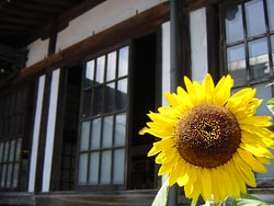 ■一輪だけひまわりが咲いてました。後ろの窓開いてますが、おっさん達の裸体丸見えでした(笑)