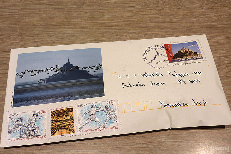その目的はオリジナルスタンプ(消印)を押してもらうため。ヴァチカンの郵便局かモン・サン・ミシェルから出そうと思っていたけど、バチカンは時間的に無理だったのでこちらから。ヴァチカンから出していても、ここからも出したでしょう。