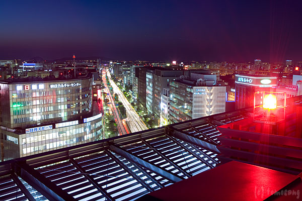 屋上から更に上ってテラスから福岡の街並みを・・・