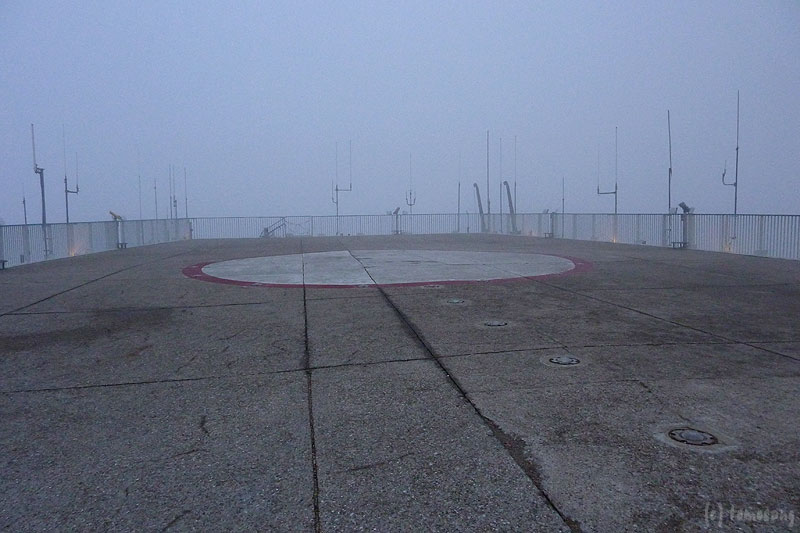 窓口でチケットを買おうとしたら「上っても霧で見えないよ」と言われた。「時間制限とかある?」と聞いたら「ない」と言われたので、「上で晴れ間を待つよ」と。「無理だと思うよ」と言われながらチケットを購入して、エレベーター乗り場へ。