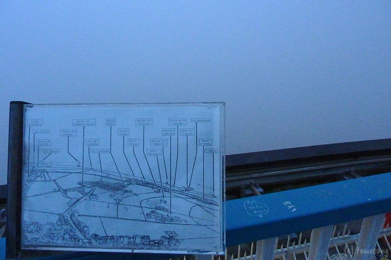 最上階フロアに戻り、展示されているパリの歴史を紹介する写真パネルを見学しつつ晴れ間を待つ。