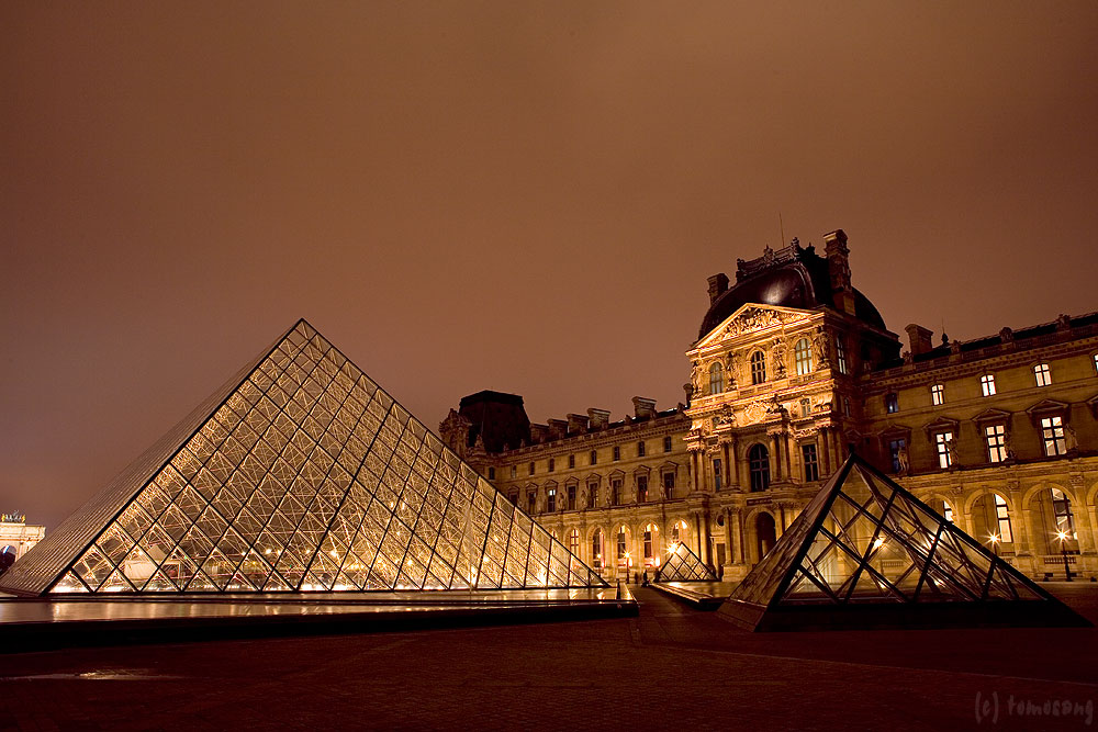 それなりに人も多く、まだ人が出入りしている(金曜日なので夜間開館の日だったみたい)。公開時間は何時までなんだろう?と疑問に思いつつ、あまり興味が無いので調べずにピラミッド広場の散策。