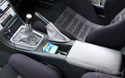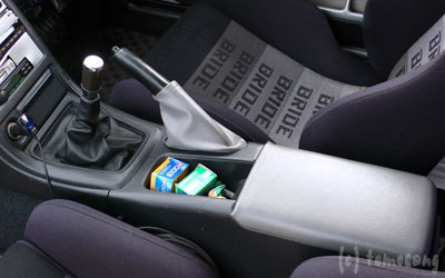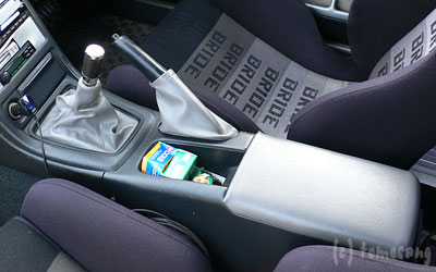 丸ごと交換すると、サイドブレーキのブーツとアームレストも張り替えているので、純正の黒が不自然に感じる。