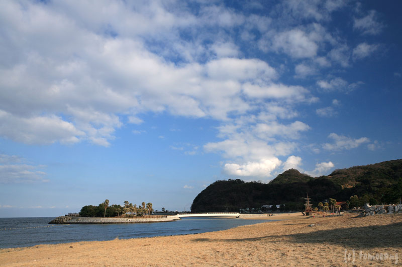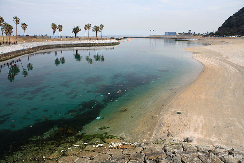 橋の上からビーチをカシャリ。曇り始めたので海の色が綺麗に出なかった。
