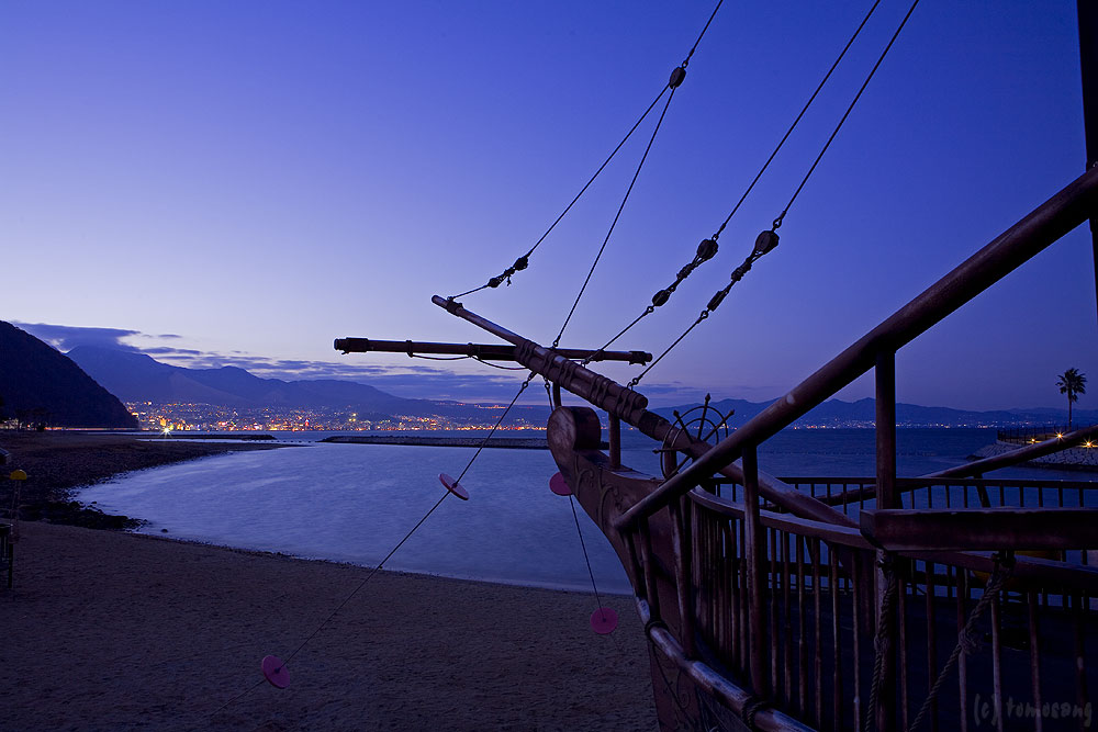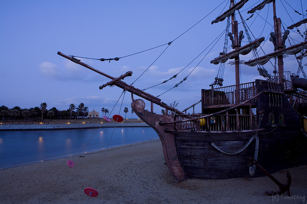 日没まで、以前とは違うアングルでの撮影ポイントを探す。帆船をシルエットに入れてみようとスタンバイしていたら、子供に絡まれる・・・