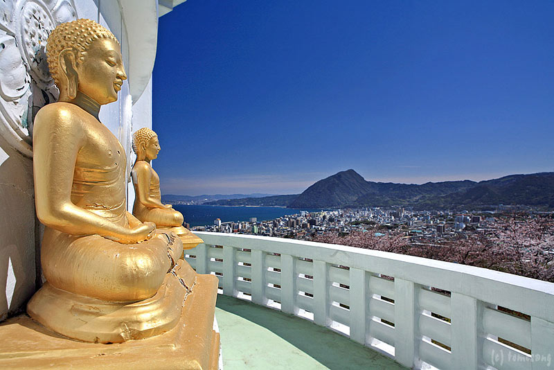 酔っ払いの馬鹿騒ぎから離れ、仏舎利に登って別府市街を見下ろしてみる。