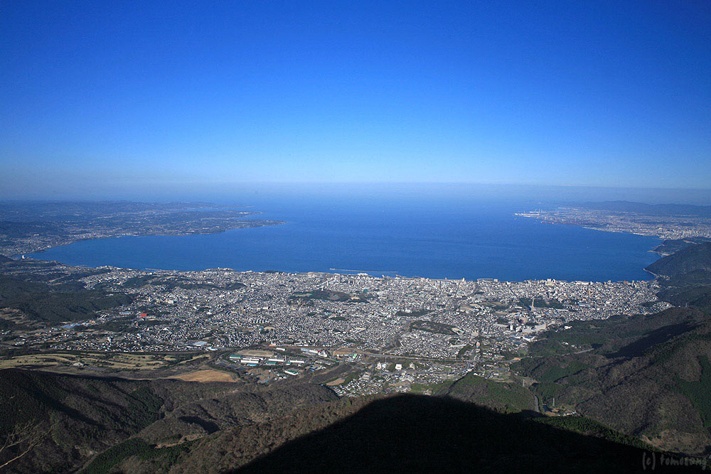 これまでに何度も登っているけど、ここまでクリアな状態で眺めるのは初めてかもしれない。残念ながら四国の影は見えなかった。