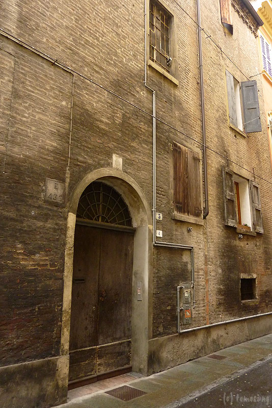 ダルミ・ノヴィ・サド公園から【Via Jacopo Berengario / ジャコポ・ベレンガリオ通り】を挟んで向かい側の建物にあります。ストリートビューがないから確認出来ない。HOTEL MODENAの近くのようです。目立つ外観ではないけど、行けば分かるでしょう。