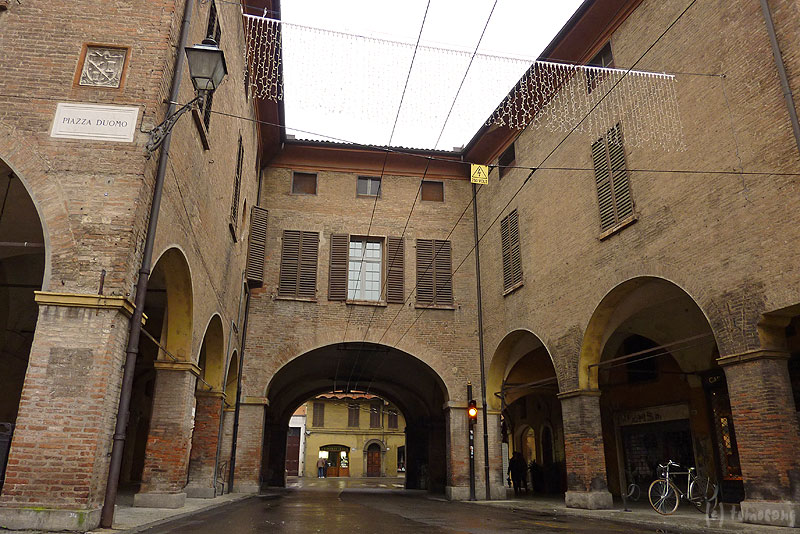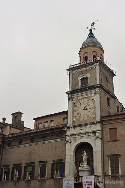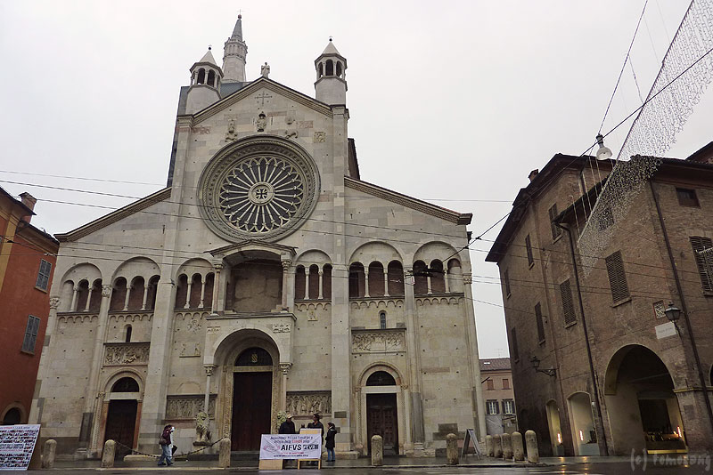 広場に面する【Duomo di Modena / モデナ大聖堂】 [ www.duomodimodena.it ] と、その鐘楼【Torre della Ghirlandina / ギルランディーナ】と合わせて世界遺産に登録されている。