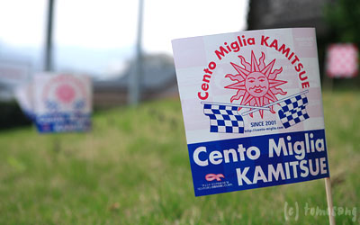 「チェント・ミリアかみつえ」 [ cento-miglia.com ] というラリーイベントで、世界の名車が阿蘇を走るということで見に行ってきた。