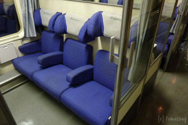 番号を見つけて中に入ろうとしたら何やら騒がしいコンパートメント内。とりあえず窓側を予約していたので「ちょいとゴメンヨ!」と中に入る。