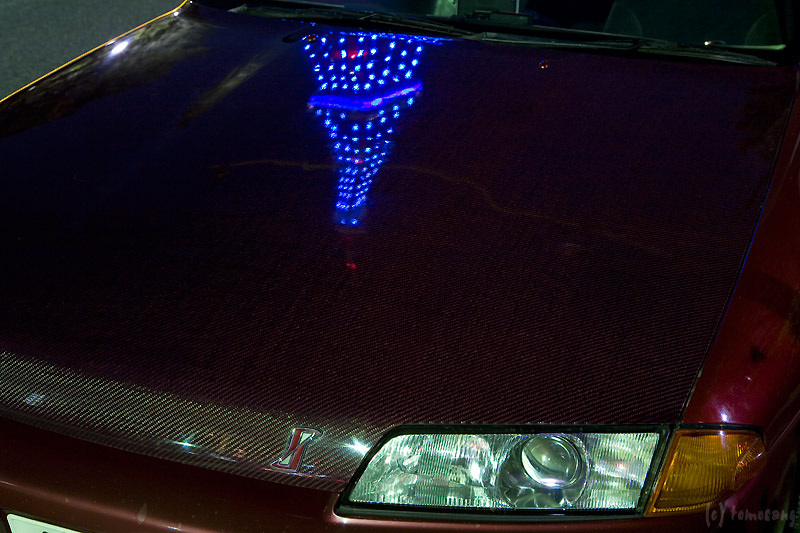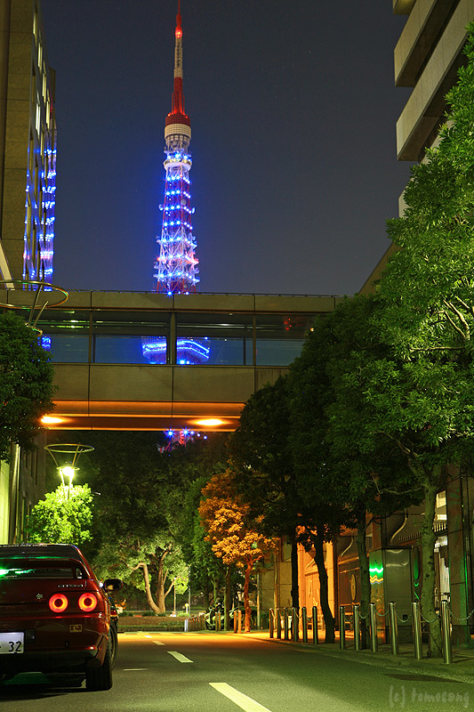 続きまして丘を降りて路肩パーキングに車を停めると・・・カーボンボンネットに東京タワー!