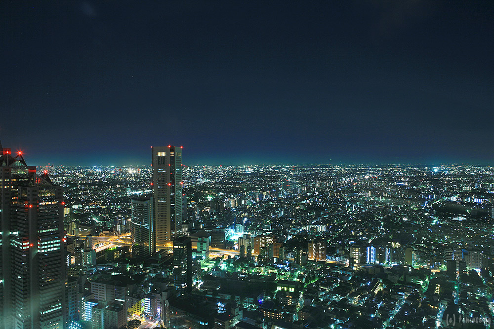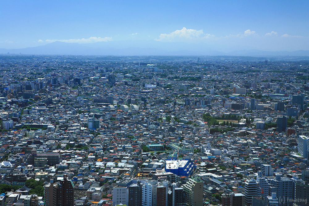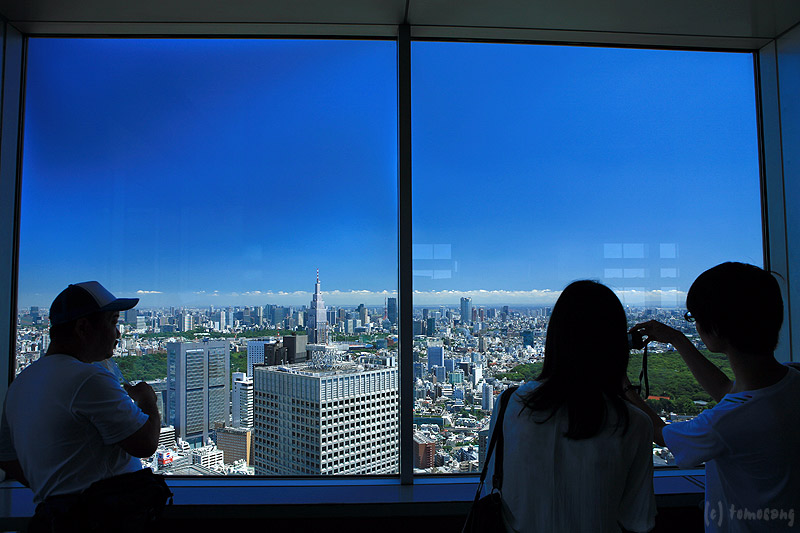 展望室は室内照明が明るいため写真はとても撮り難い。しかも三脚は使用禁止。ガラスにレンズを押し付けたりと無茶な撮影している人多数。この明るさと三脚使えないのなら、しょうがないか。それ以前に「節電モード」なので、外に見えるビルに照明が点いてない。この一枚を撮影しただけで次の場所へ移動した。