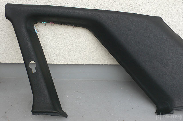 R32定番の劣化症状の一つ。リアピラーフィニッシャーの表皮剥がれ。