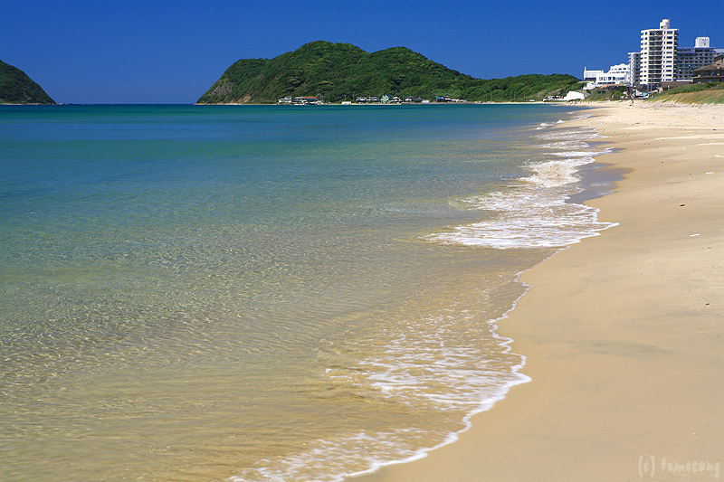 人も入らず、海藻類の漂着も少ない綺麗な砂浜だ。