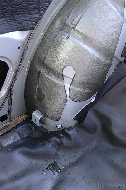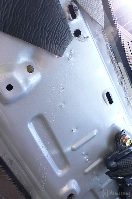 普段はフィニッシャーがついてるので、水はシートの方へ行ってないのかもしれない。ボディーに沿って下まで垂れて行き、最終的にクォーター内に溜まって錆を誘発させていたのか。