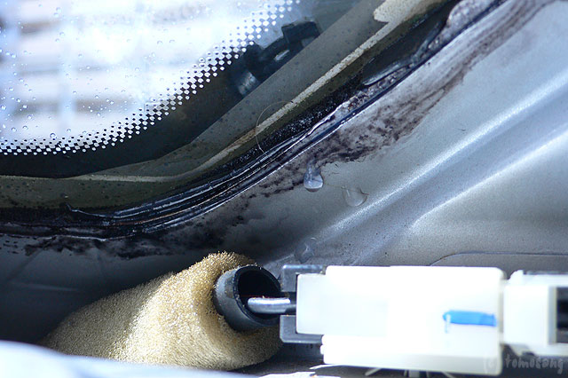 クォーター窓はいくら水をかけても浸入は確認できなかった。この場所から伝って来た水が原因か?