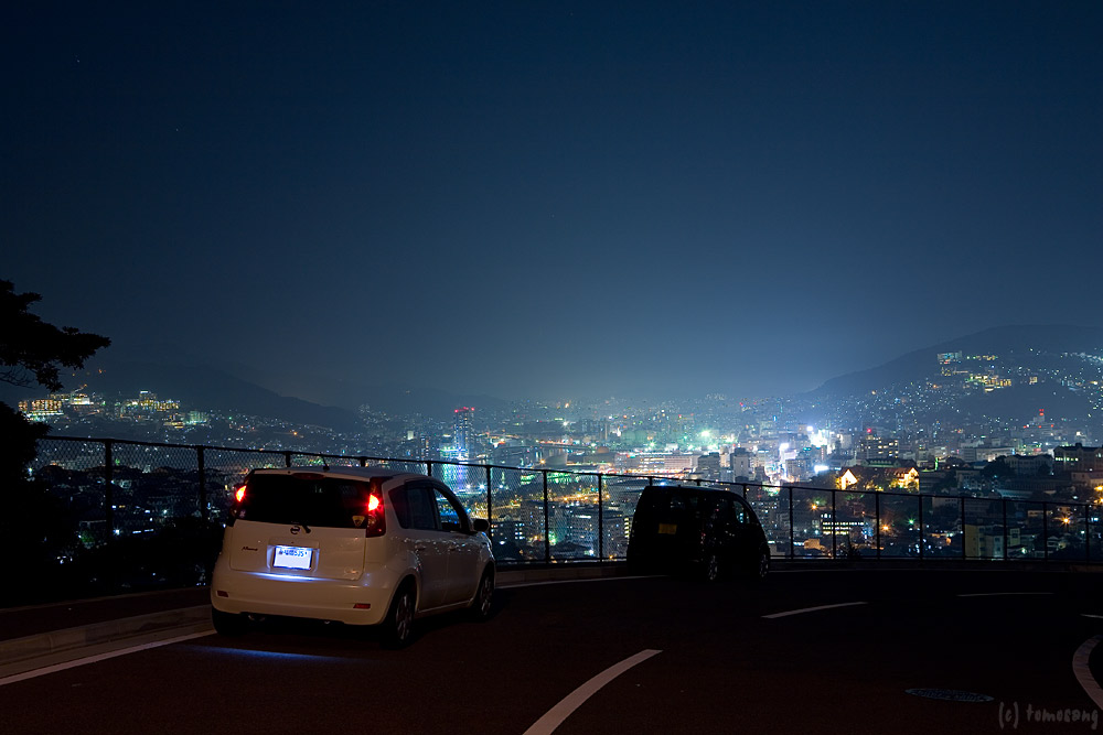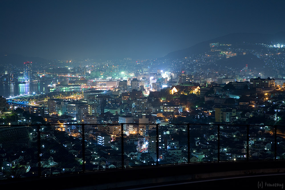 長崎はこの様に街を見下ろせる場所が沢山あるのだが、それを全部立ち止まって撮影していては大変だ。今回「道路公園」からの夜景が見えなくなっていたので、同じ様な光景を眺めることの出来る場所として、この場所だけ撮影してきた。