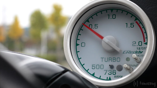 上り坂では、ペダルを床まで踏み込だまま回転数を上げて行っても、正圧には全く入らず。平坦な道や下り坂ではピークで0.4kまで上がっているようだ。体感ではブーストが掛かっている感覚は全く感じない。EVCを入れてみても、立ち上がりやブーストの掛かりに変化無く、設定値にまでも上がらない。