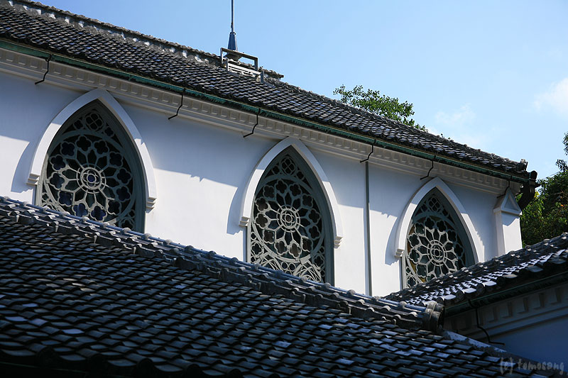 漆喰で瓦屋根。「これぞ和洋折衷!」とかなんとか説明しながら、撮影している私の横を通過して行ってるガイドが居た。
