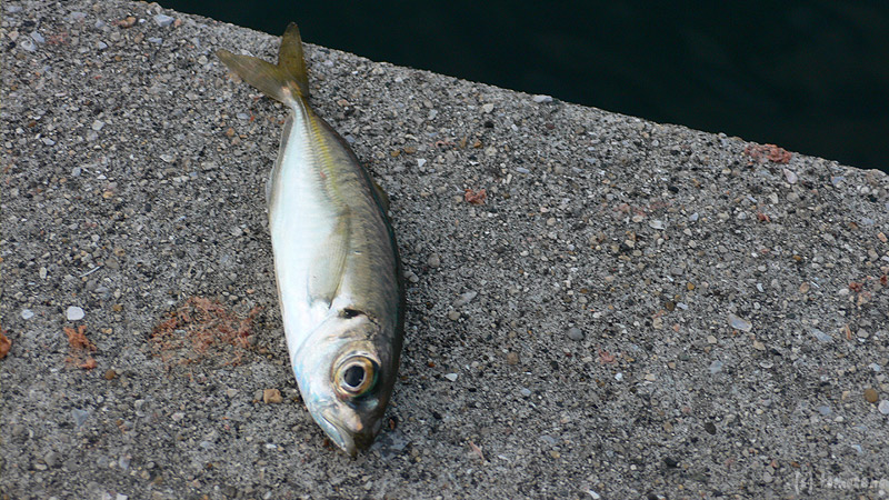 試しに竿を投げたら釣れた。これは関あじではないらし。