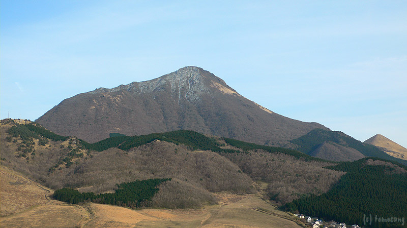 山頂に雪を被る由布岳を左に眺めながら福岡へ。