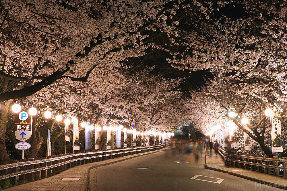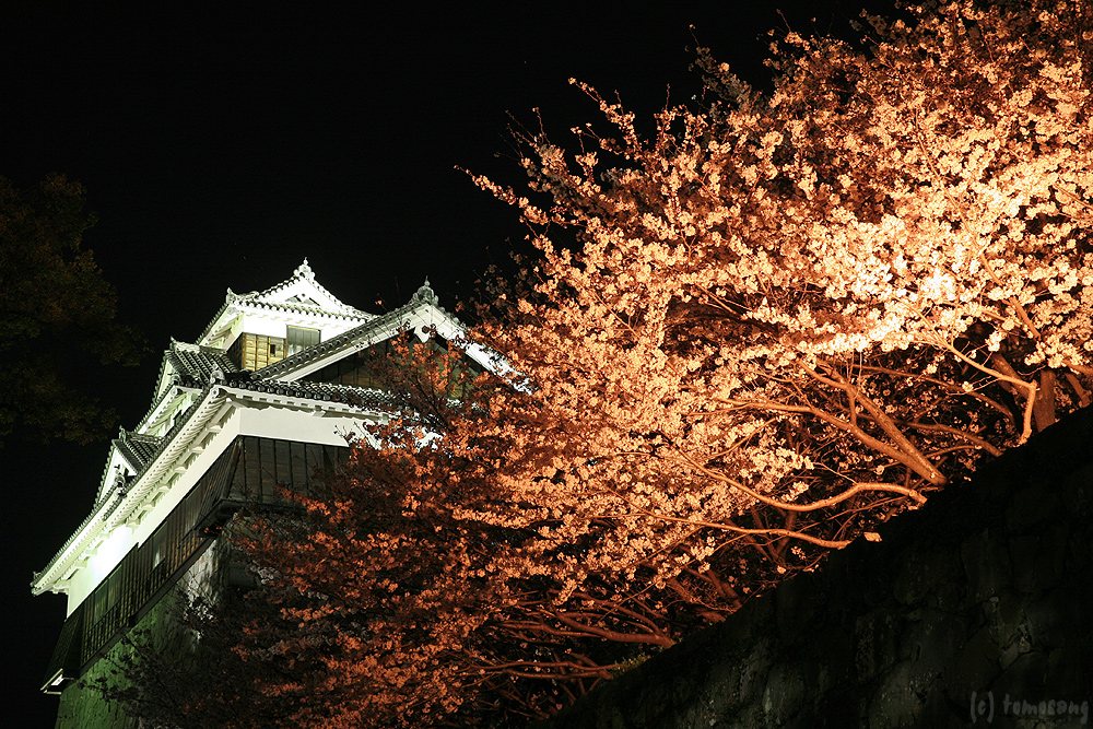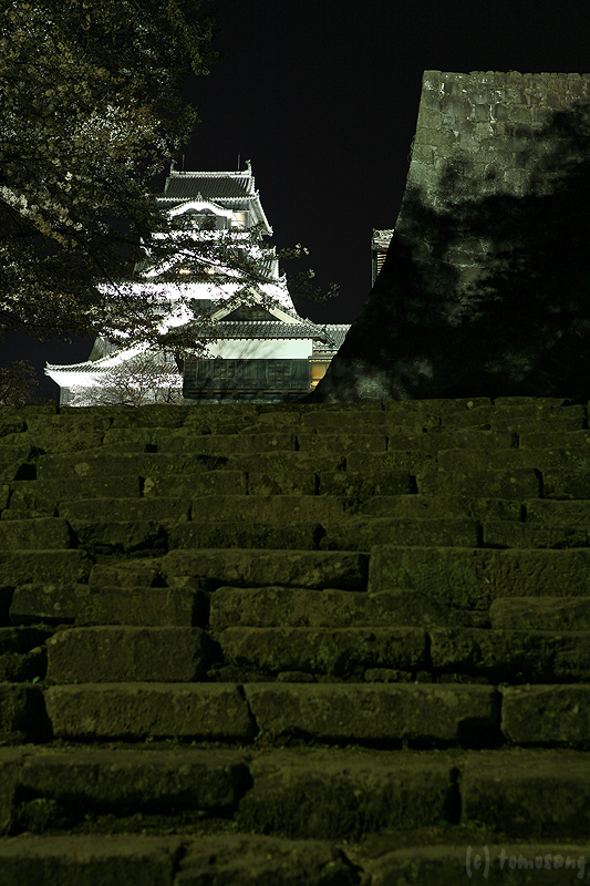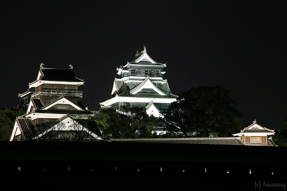 夜間開園の時にしか立ち入ることが出来ない場所からの、ライトアップされた熊本城を撮影して回る。