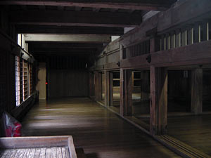 ■天守閣一階。中は物凄く薄暗いです(スローシャッター撮影)。特大サイズの消火器が置いてありました。
