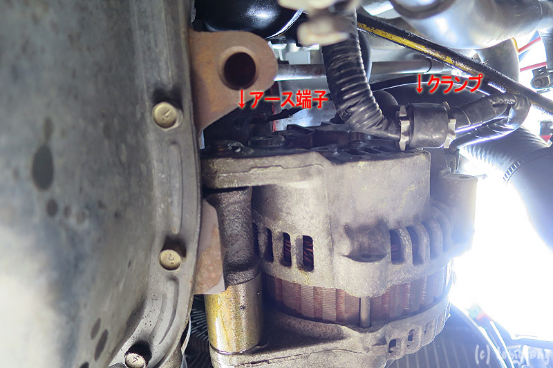 アースとクランプ取り付けボルトは締め過ぎぬよう(オルタのボディーがアルミなので)