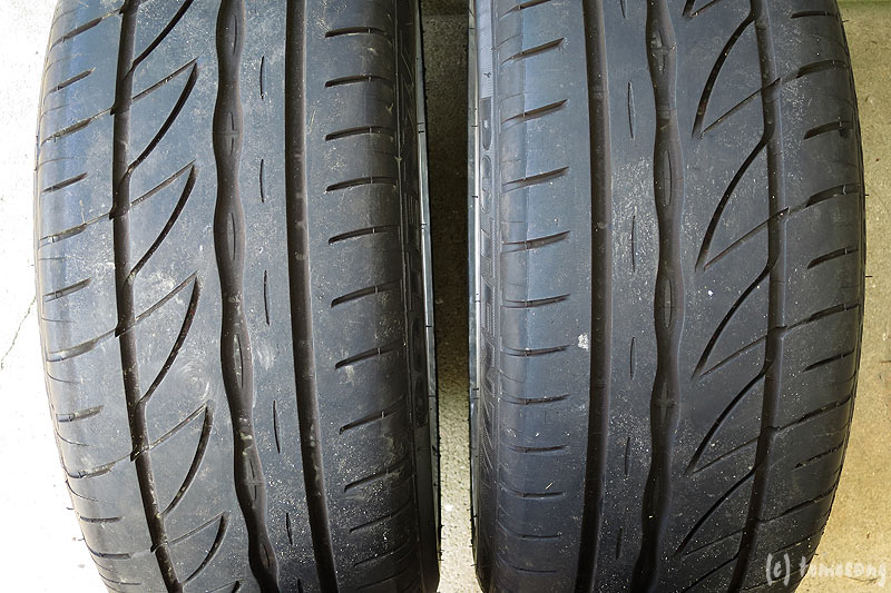ブリヂストン:タイヤの基礎知識「非対称タイヤと回転方向指定パタンタイヤについて」