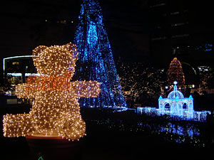 今日は帰りにフィルムを買いに行ったついでに寄った、天神警固公園(ピィースの取材してました)でのクリスマスイルミネーション写真でも貼っておきます。