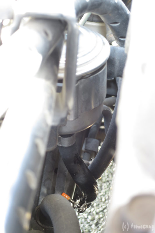 オイルではなくガソリンということで、安全のために作業はディーラーに頼もうかなと思っていました。工賃は9,000円程との話でした。たかがバンドで止まっているだけのゴムホース3本に9,000円はないよなと思い始めたらD.I.Y.開始!