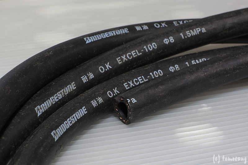 SNSで情報を求めたら燃料ホースの内径は8パイと教えていただいた。同時に通販利用のアイデアも頂く。